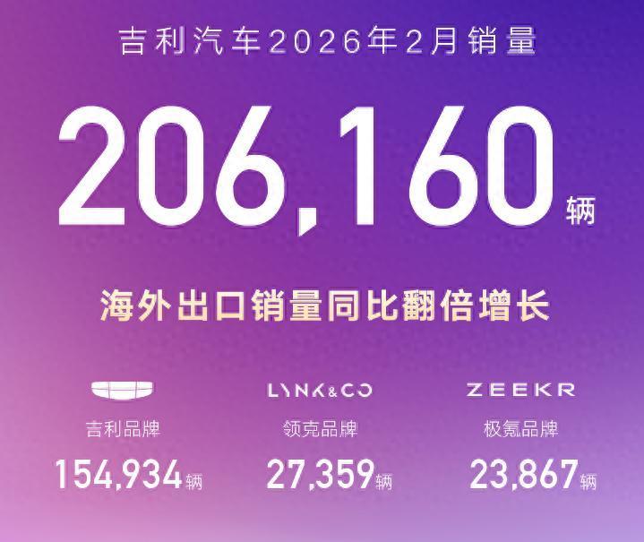 就在这样的行业深度调整期,吉利汽车交出了一份逆势上扬的开年成绩单:2月单月销量20.6万辆,连续两个月实现同比正增长;1-2月累计销量47.6万辆,占据自主品牌销量榜首。那么,这份成绩的背后,究竟是单纯的数字增长,还是企业的体系化成果呢?