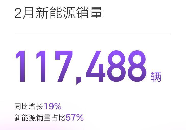 在这样的行业背景下,吉利却能取得20.6万辆的销量成绩,在自主品牌整体零售中占比超30%。而从核心数据来看,吉利2月的销量呈现出多点开花的特征。其中,新能源板块是增长主力,当月销量11.7万辆,同比增长19%,新能源渗透率达到57%,超行业44.9%的整体渗透率。