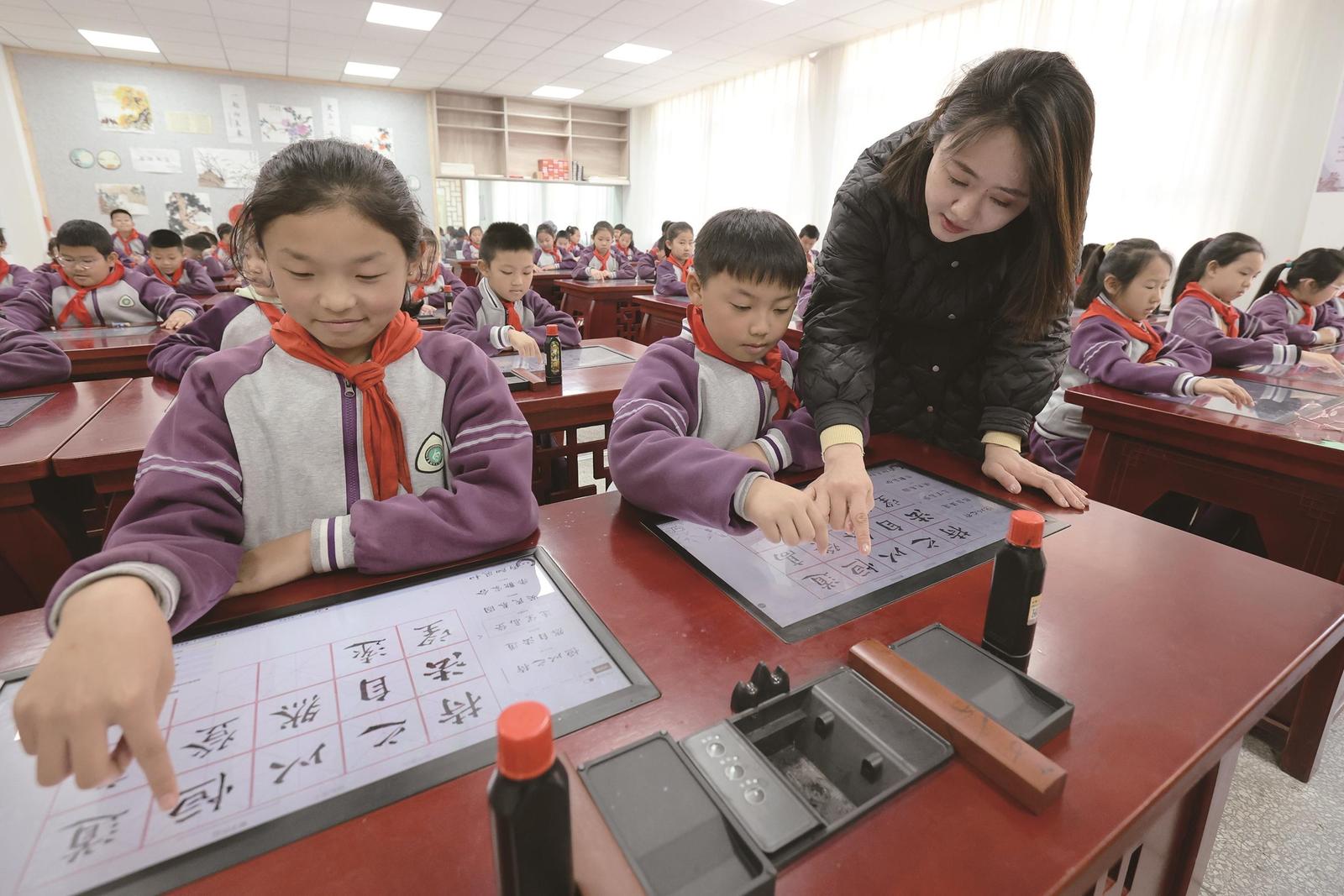 在兴庆区第三十二小学的电子书法教室里,同学们在交互式数字书法临摹台上自主练习;智慧录播教室成为提升教学质量和效率的重要载体;在操场上,孩子们跟随老师学习八段锦……近年来,我市部分学校开展各类特色活动,课程体系不断丰富,师资队伍持续优化,现代化教学设施日臻完善,校园文化氛围日益浓厚,“教育在银川”品牌愈发响亮。(本组图片均摄于3月17日)