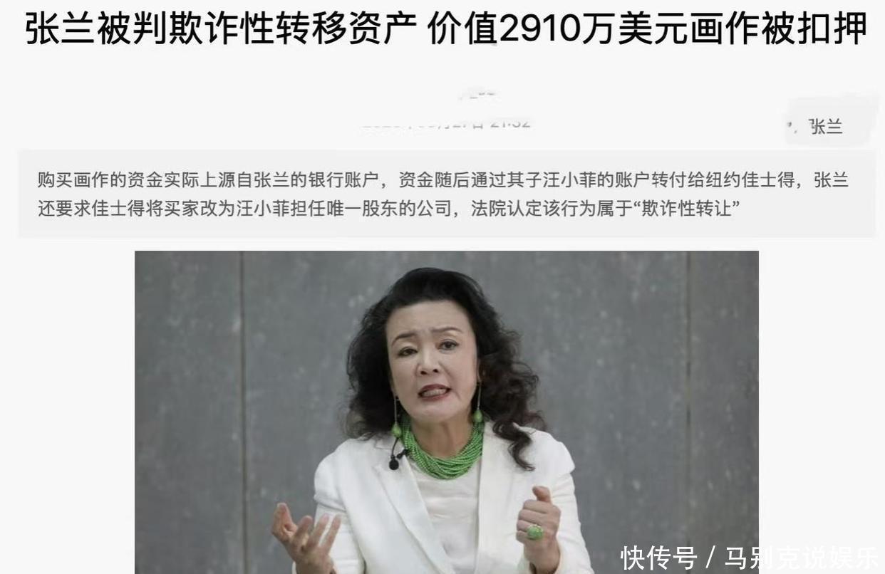 最近,64岁的张兰真是体验了一把什么叫“冰火两重天”。 2026年2月23日,她刚高高兴兴抱上了大孙子,在直播间里笑得合不拢嘴,逢人就夸孙子是“天使宝宝”。 可还没高兴够一个月,3月24日,美国法院一纸裁决,直接把她价值2910万美元、折合人民币差不多2个亿的两幅名画给扣押了。 扣押理由直指“欺诈性转让资产”,说白了就是法院认为她为了躲债,把画偷偷转到了儿子汪小菲的公司名下。