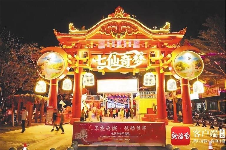 r“我们深度挖掘保亭本土黎族苗族文化与七仙传说内涵,围绕‘七位仙女’与‘七大神兽’故事脉络打造沉浸式神话叙事场景,创造出很多原创的精彩主题演出。”保亭七仙奇梦不夜城项目负责人王景国介绍,作为全国首个免费开放的黎苗神话主题演艺不夜城,这里每日演出超10场,让市民游客在夜间休闲中感受民族文化的独特魅力。