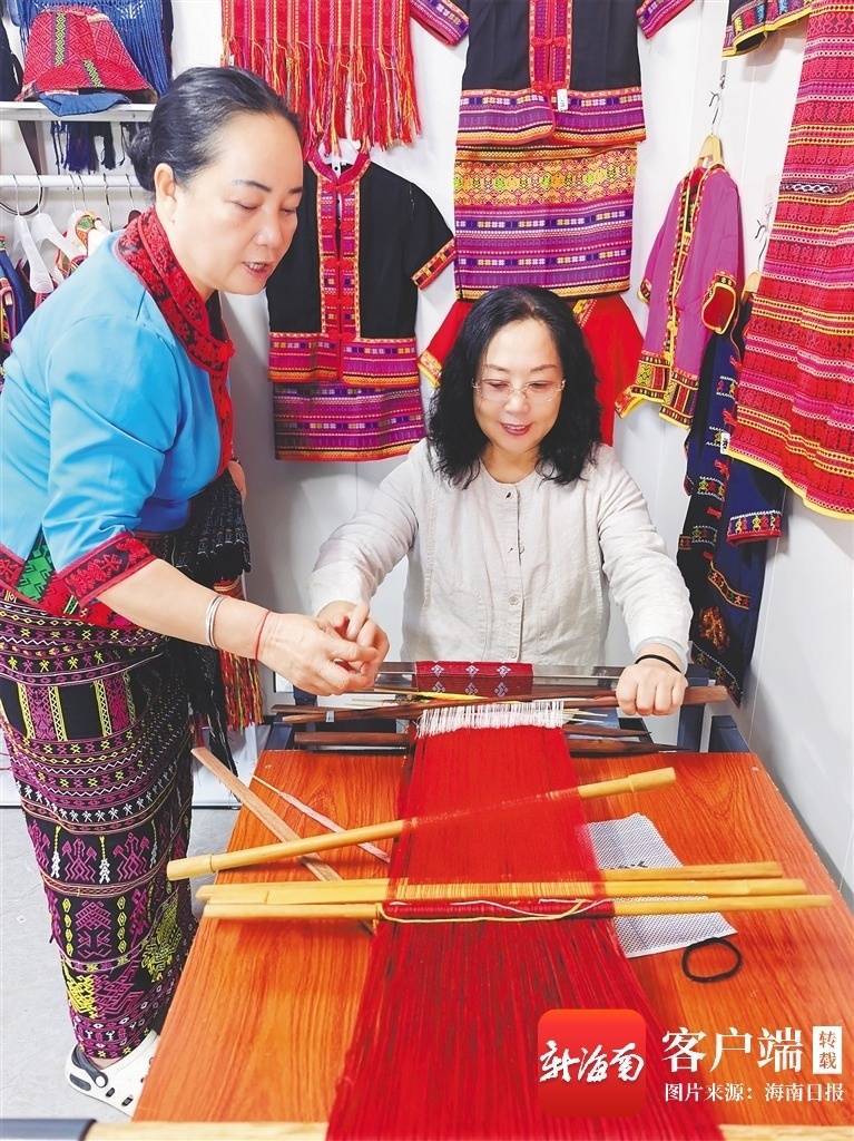r“自今年年初不夜城开街以来,许多外地游客走进店里,对黎锦充满了好奇。”王小兰表示,为了丰富游客体验,她和员工时常穿着黎族服饰,使用踞腰织机现场编织黎锦,让游客直观感受非遗的魅力。此外,店内还提供黎锦DIY体验活动,让游客参与黎锦手工制作过程,“希望大家在品尝美食、观看演出的同时,能在这里体验到特色民族文化,把保亭的非遗带回家。”
